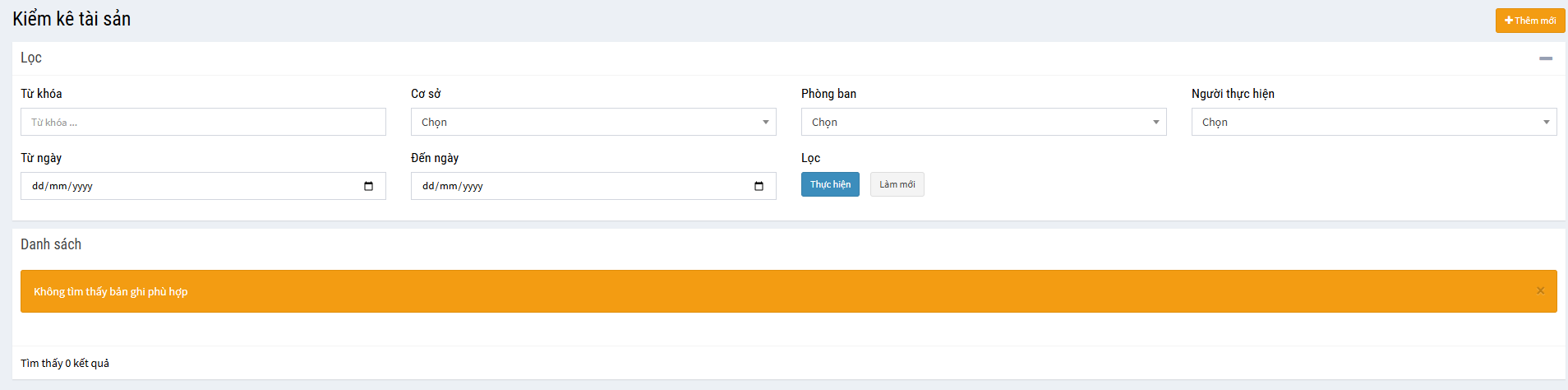 -  Tại màn hình thêm mới người dùng cần nhập thông tin cơ bản như cơ sở, kho, vị trí, phòng ban sau đó lấy danh sách tài sản tương ứng