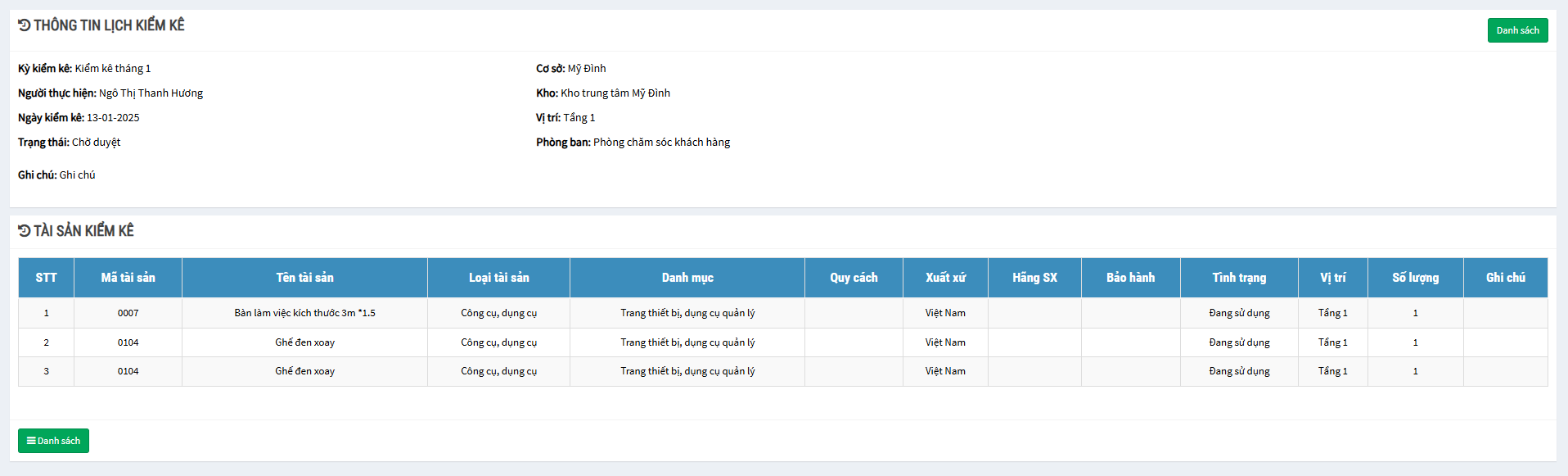 -  Tại màn hình chính người dùng có thể thêm mới, chỉnh sửa, hoặc xem chi tiết phiếu kiểm kê