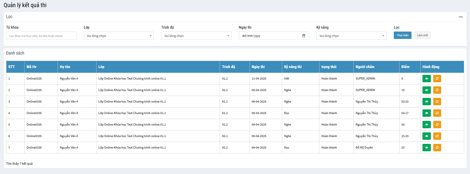 - 20. Tổng hợp danh sách học viên trượt và thi lại