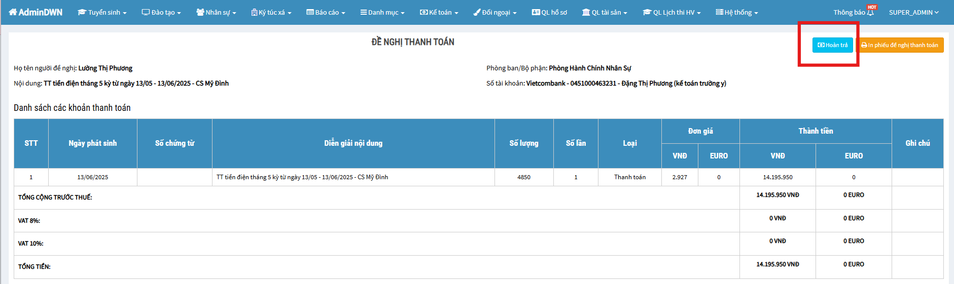 - 25.9. Danh sách học viên đang thuê phòng KTX (Dành cho quản sinh)