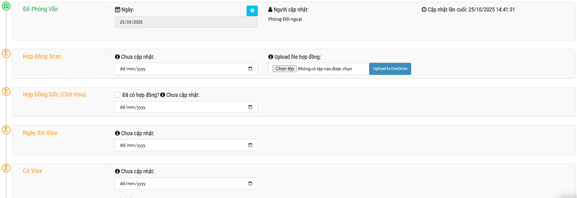 11. Đã xuất cảnh: Khi cập nhật ngày sẽ chuyển qua bước này