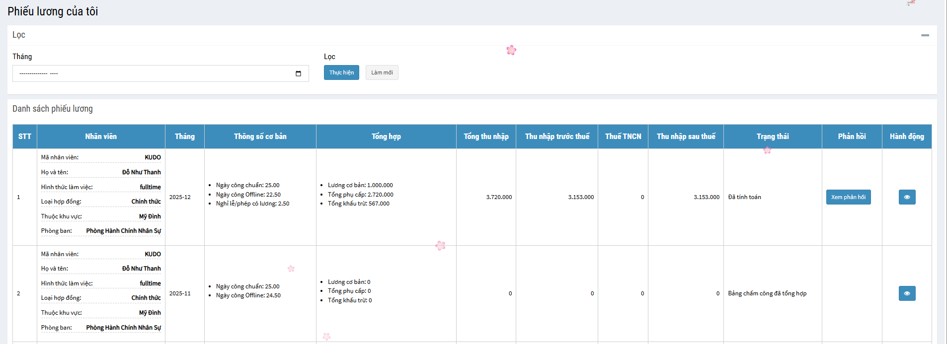 - 25.9. Danh sách học viên đang thuê phòng KTX (Dành cho quản sinh)