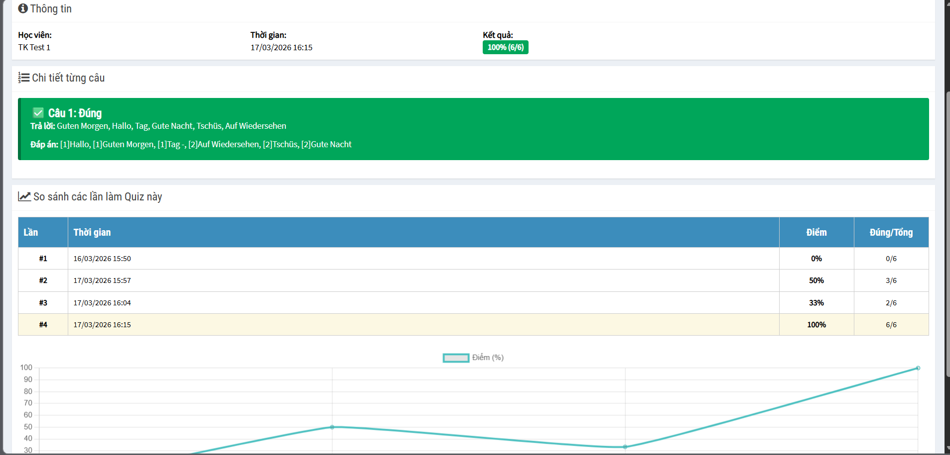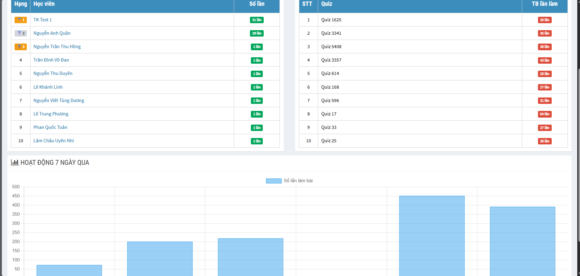 - Biết họ đã làm những bài nào và số lần thực hiện