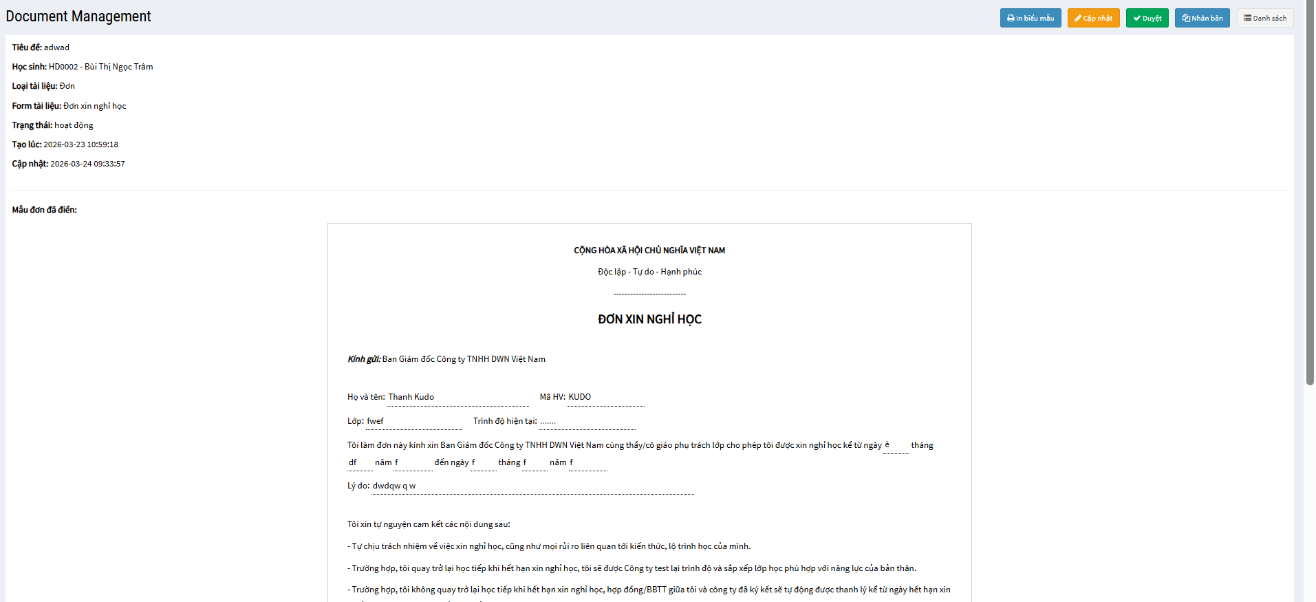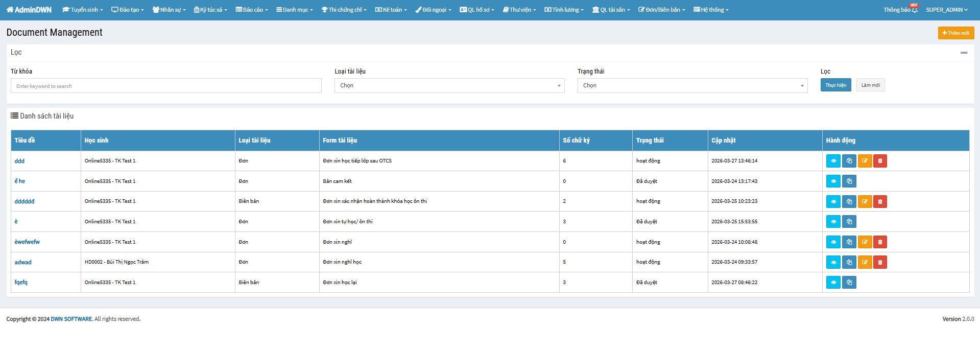 - 25.9. Danh sách học viên đang thuê phòng KTX (Dành cho quản sinh)