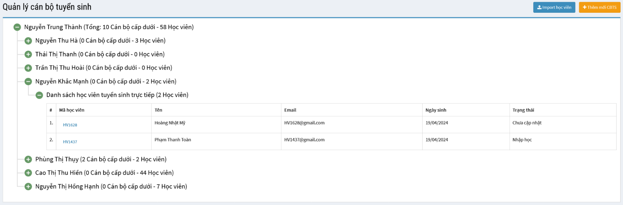 3.1. Hướng dẫn quản lý theo cán bộ tuyển sinh