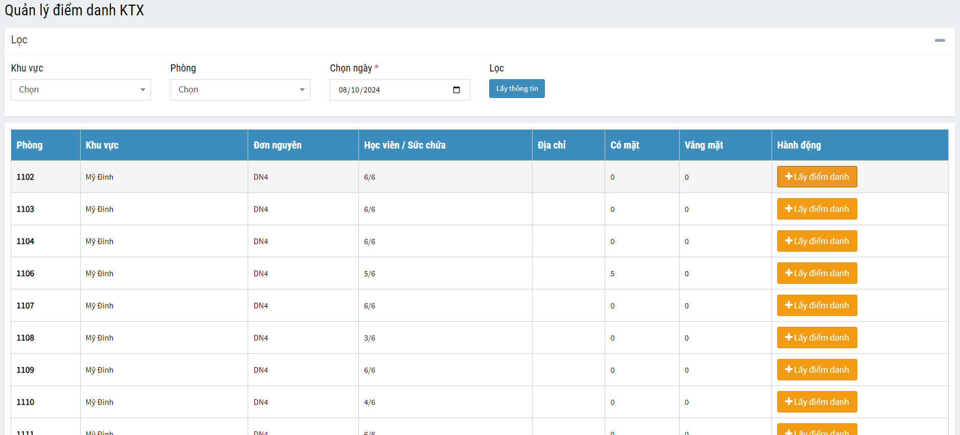 - 25.9. Danh sách học viên đang thuê phòng KTX (Dành cho quản sinh)