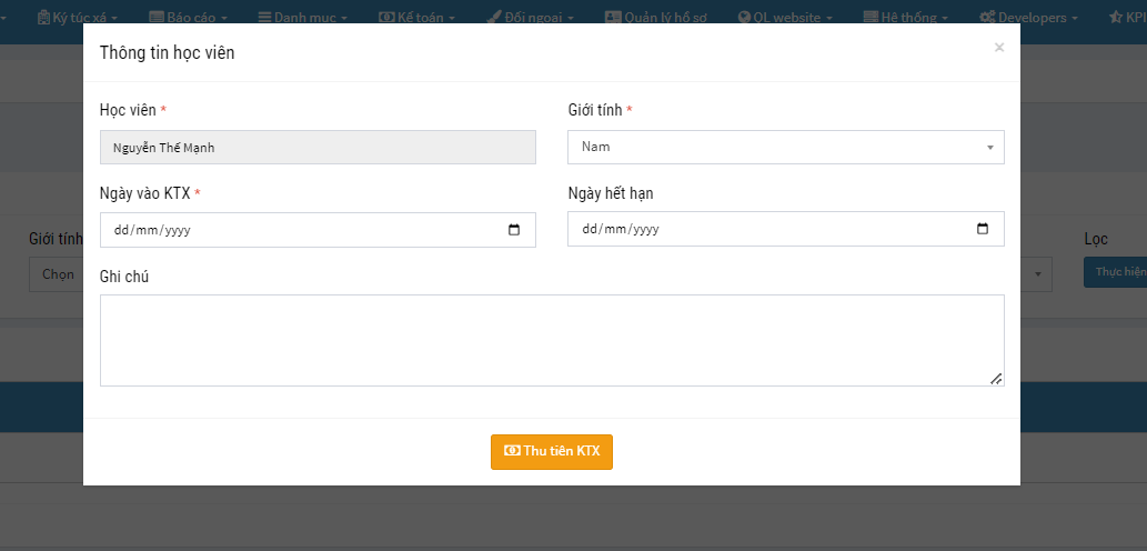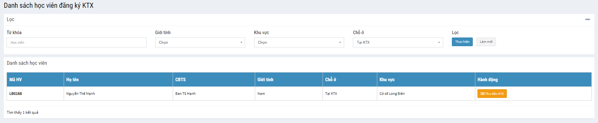 - 25.9. Danh sách học viên đang thuê phòng KTX (Dành cho quản sinh)