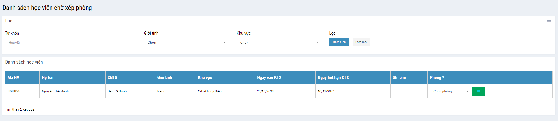 - 25.8. Danh sách học viên chờ xếp phòng (Dành cho quản sinh)